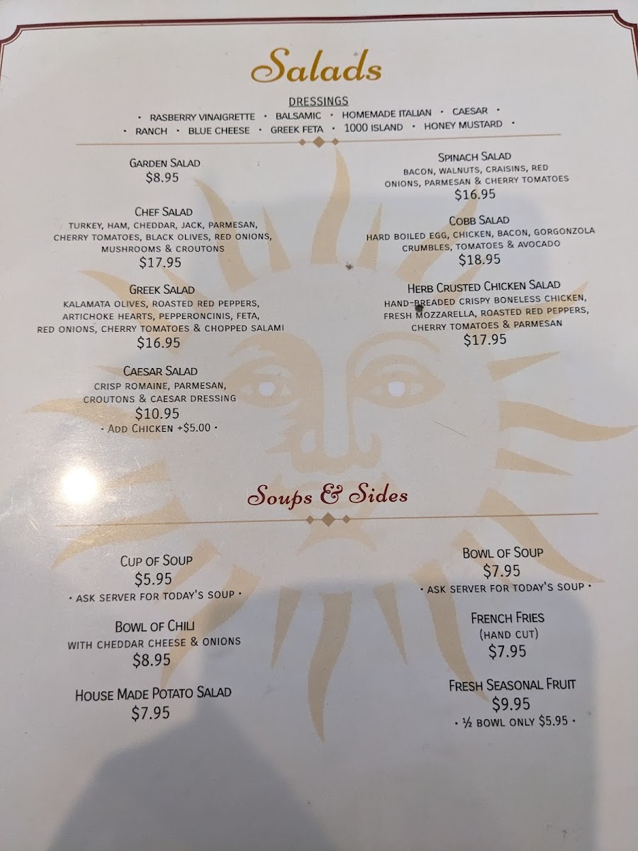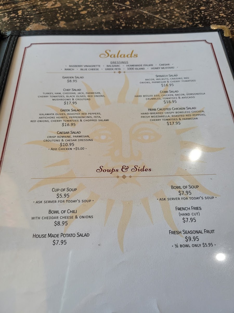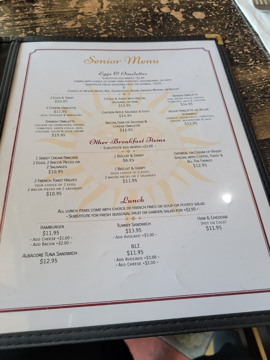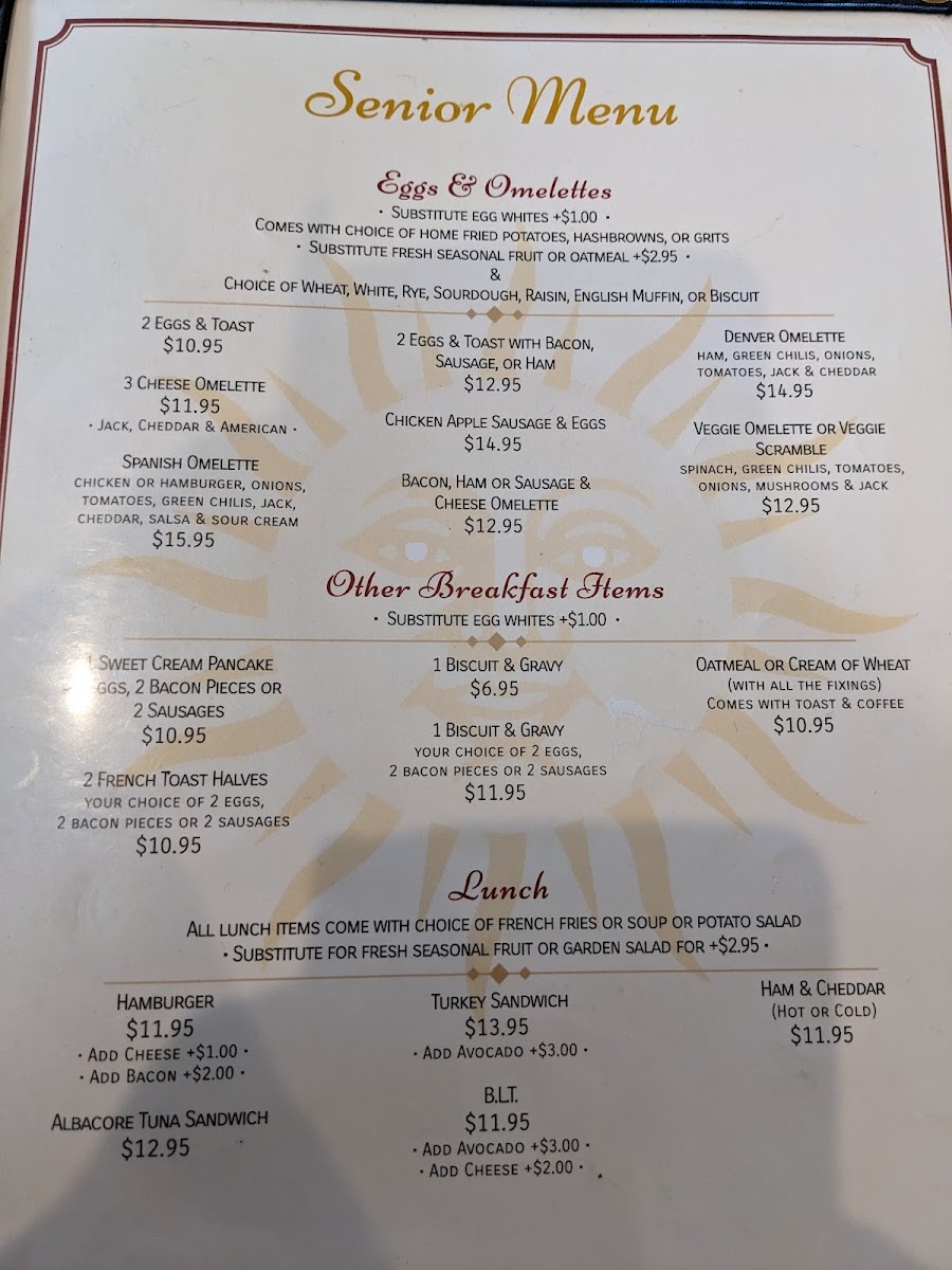 The menu at Cafe Soleil offers a variety of breakfast and casual dining options, available for those seeking a hearty morning meal or a light lunch. The menu is organized into several groups to accommodate different tastes and dietary preferences.